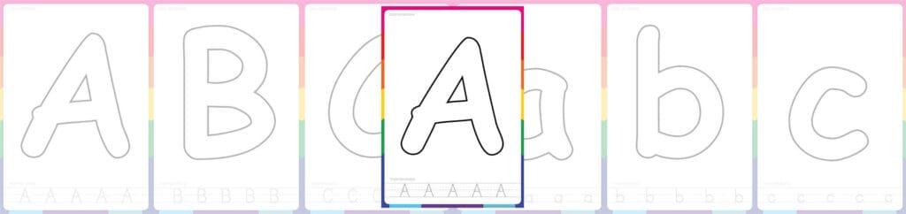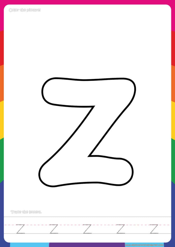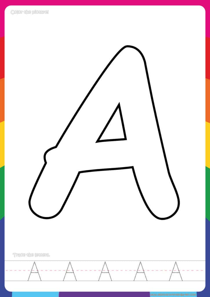 | A-Z (uppercase) COLORING + TRACING | Color and trace 26 uppercase A-Z letters. |