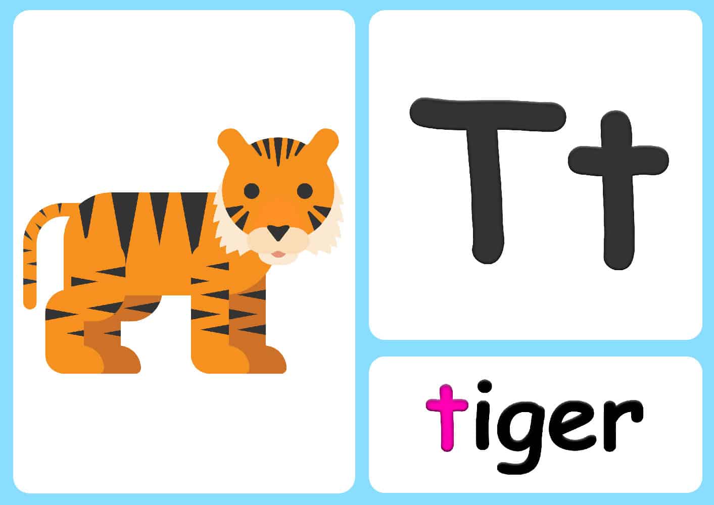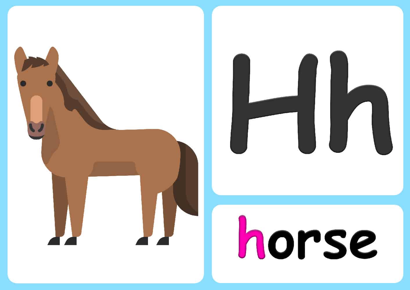 Pack 3 of the animal flashcards are actually animal phonics! These animal alphabet flashcards are designed to help children practice the sounds of letters using animal names. These flashcards are great if children are getting bored of their regular phonics cards.