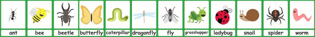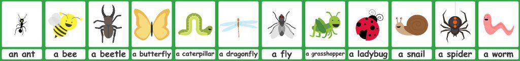 I recommend introducing the shorter insect names like ‘ant’ and ‘bee’ first and then progressing into the more difficult cards. Try to introduce them slowly using simple sentences. Talk about the insect’s size and color. Try to keep a note of what you taught so you can ask your children again next time. When teaching ESL students, feel free to use the following sentences as a good starting point