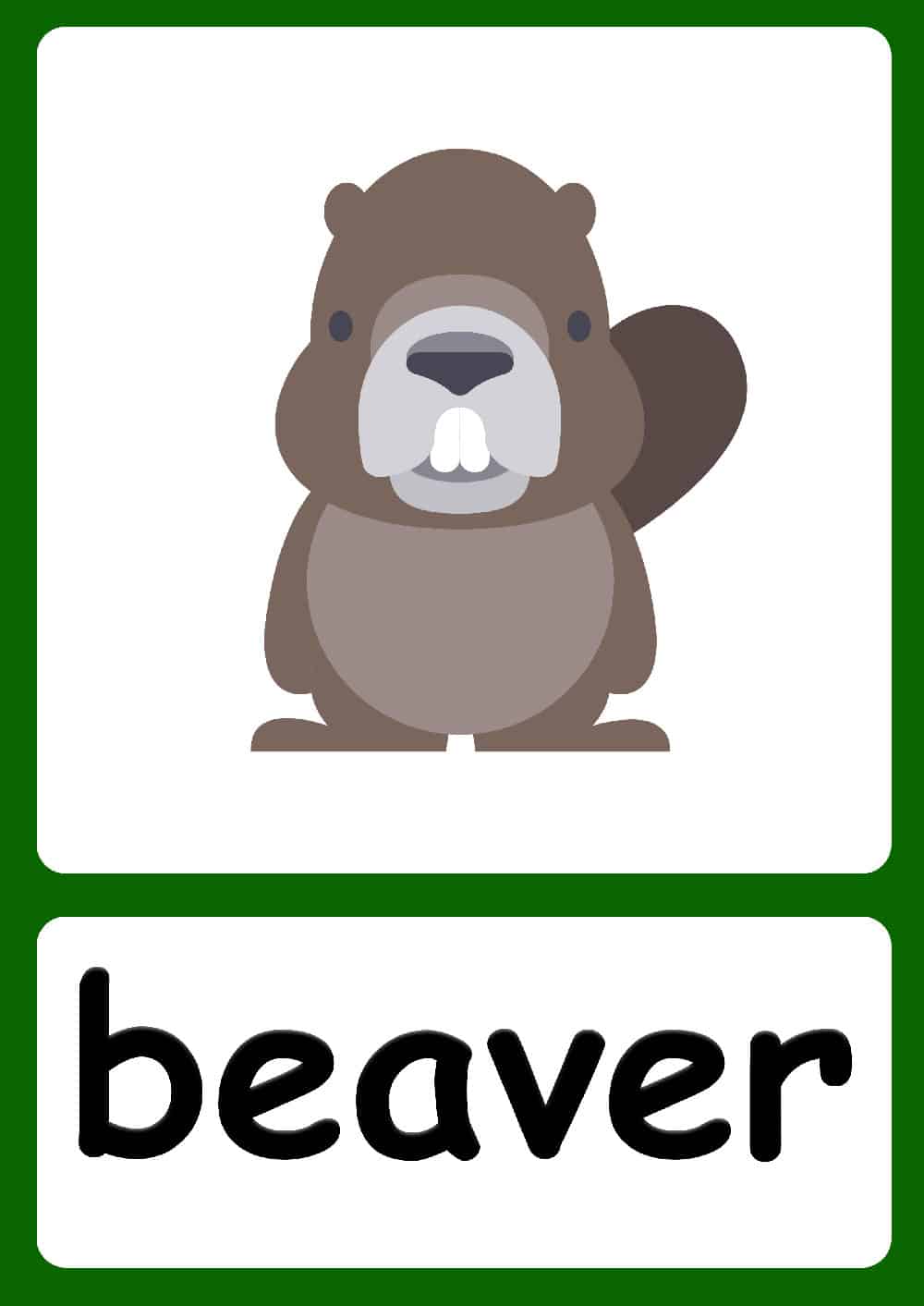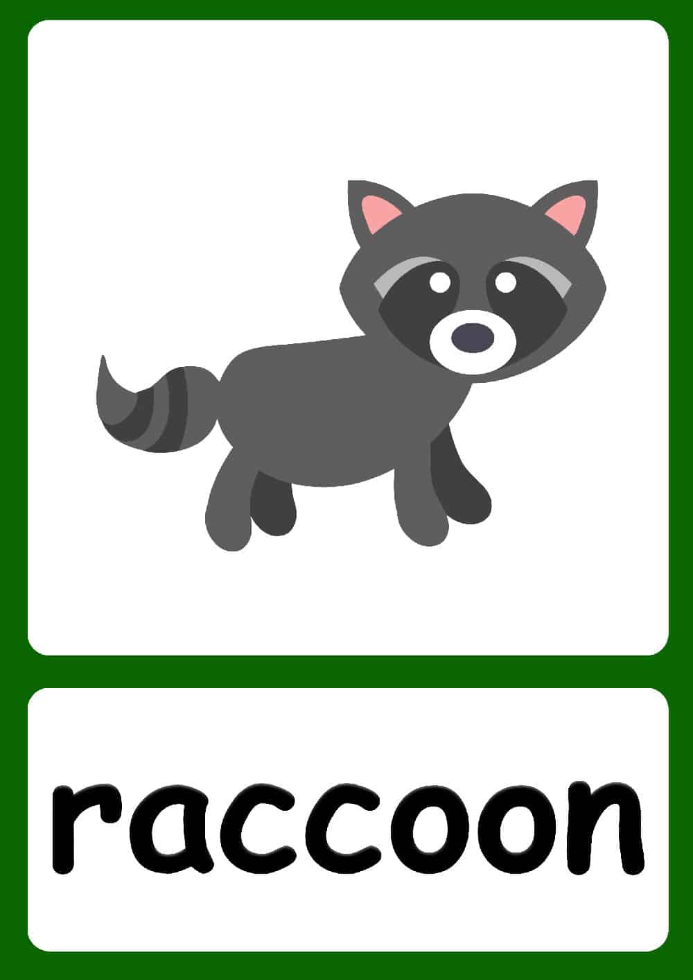 There are 20 different forest animal flashcards to choose from. Feel free to pick and choose animals that are most relevant for your class. With forest animals, I like to talk about the animal’s color blends in with their surroundings. I also like to talk about what the animals eat and the hierarchy of the animal kingdom. If there are animals that have been seen in movies that the children may know, then try to relate them to the flashcards to make the lesson engaging.