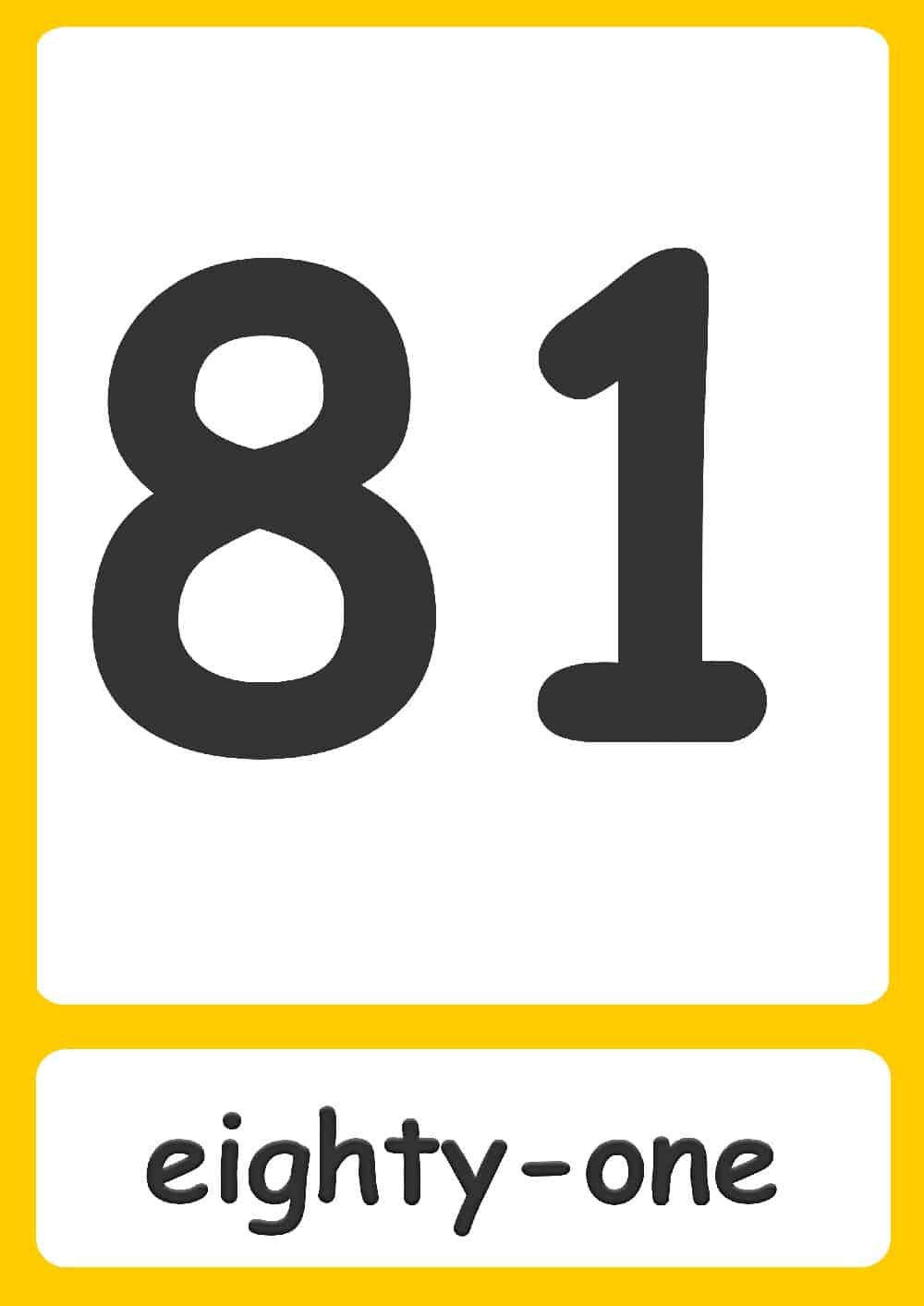 | 1 one | 21 twenty-one | 41 forty-one | 61 sixty-one | 81 eighty-one |