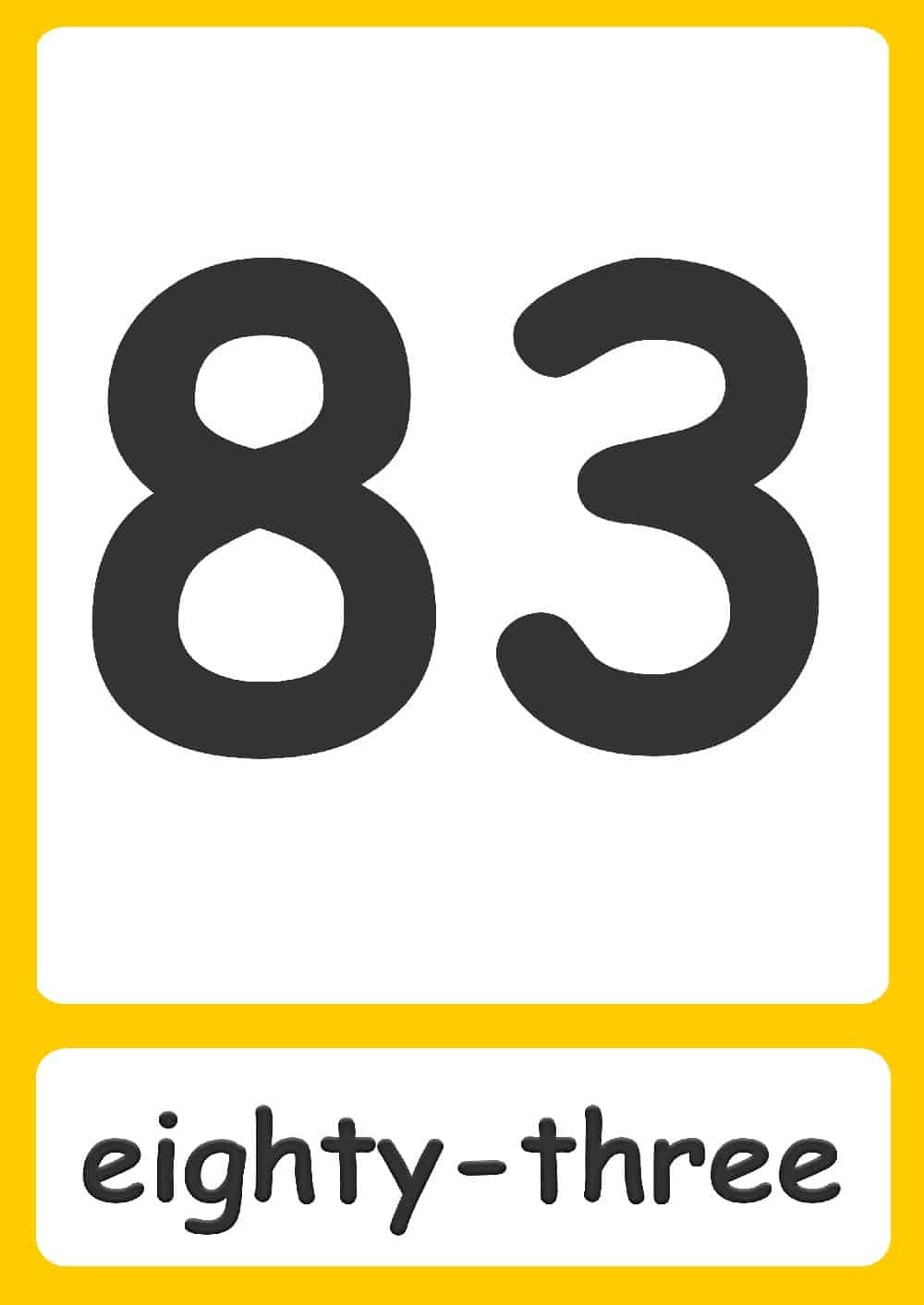| 3 three | 23 twenty-three | 43 forty-three | 63 sixty-three | 83 eighty-three |