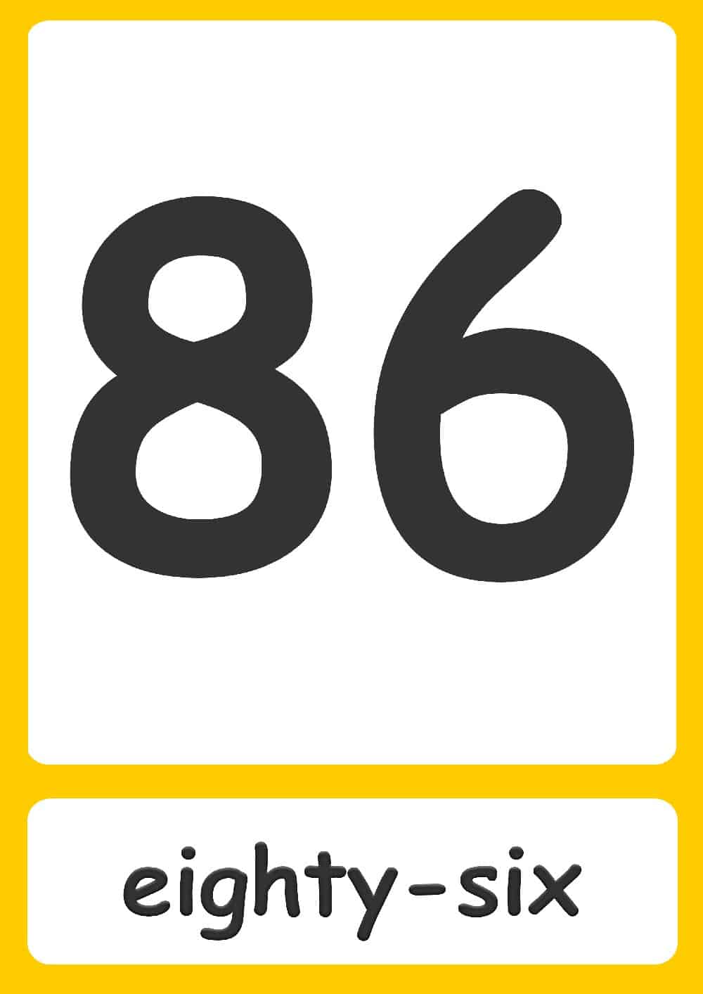 | 6 six | 26 twenty-six | 46 forty-six | 66 sixty-six | 86 eighty-six |
