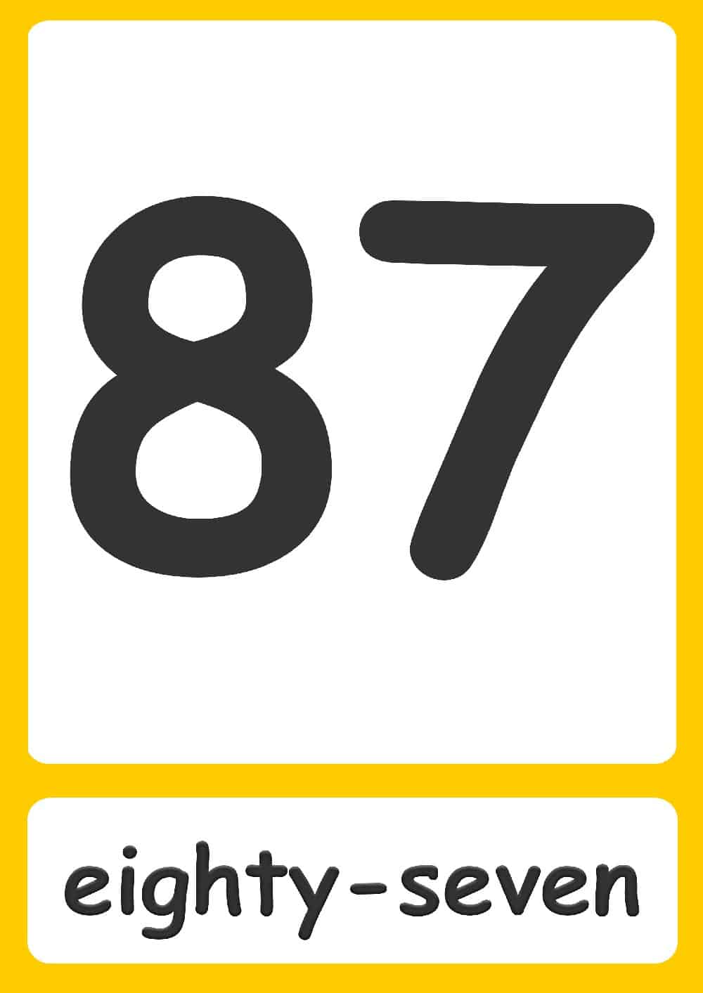 | 7 seven | 27 twenty-seven | 47 forty-seven | 67 sixty-seven | 87 eighty-seven |