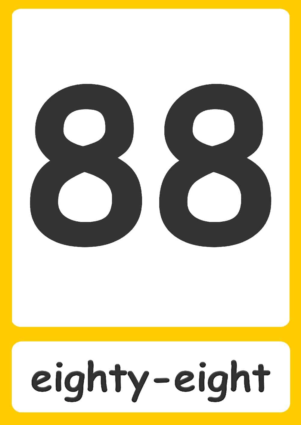 | 8 eight | 28 twenty-eight | 48 forty-eight | 68 sixty-eight | 88 eighty-eight |