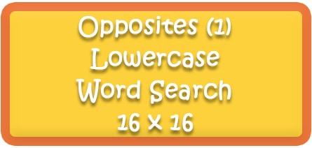 | Opposites (1) Lowercase Word Search Puzzle 16 x 16 | Read 30 Opposites vocabulary words in lowercase |