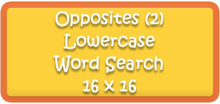 | Opposites (2) Lowercase Word Search Puzzle 16 x 16 | Read 20 Opposites vocabulary words in lowercase |