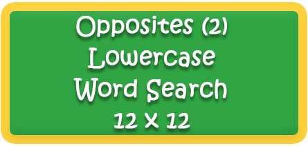| Opposites (2) Lowercase Word Search Puzzle 12 x 12 | Read 20 Opposites vocabulary words in lowercase |