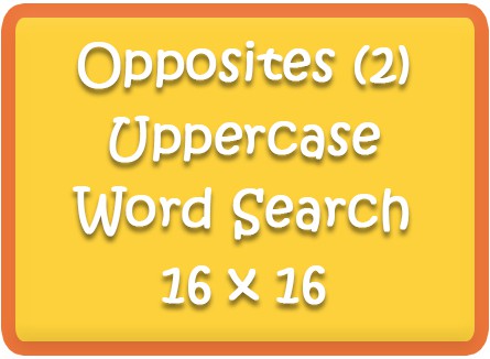 | Opposites (2) Uppercase Word Search Puzzle 16 x 16 | Read 20 Opposites vocabulary words in uppercase |