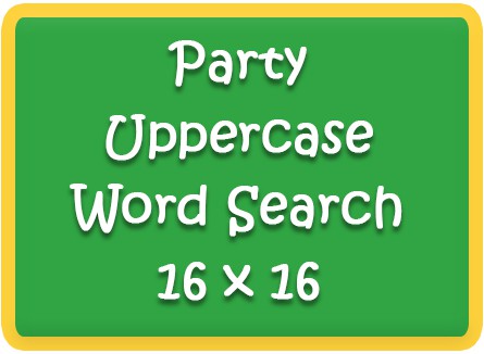 | Party Uppercase Word Search Puzzle 16 x 16 | Read 12 party vocabulary words in uppercase |