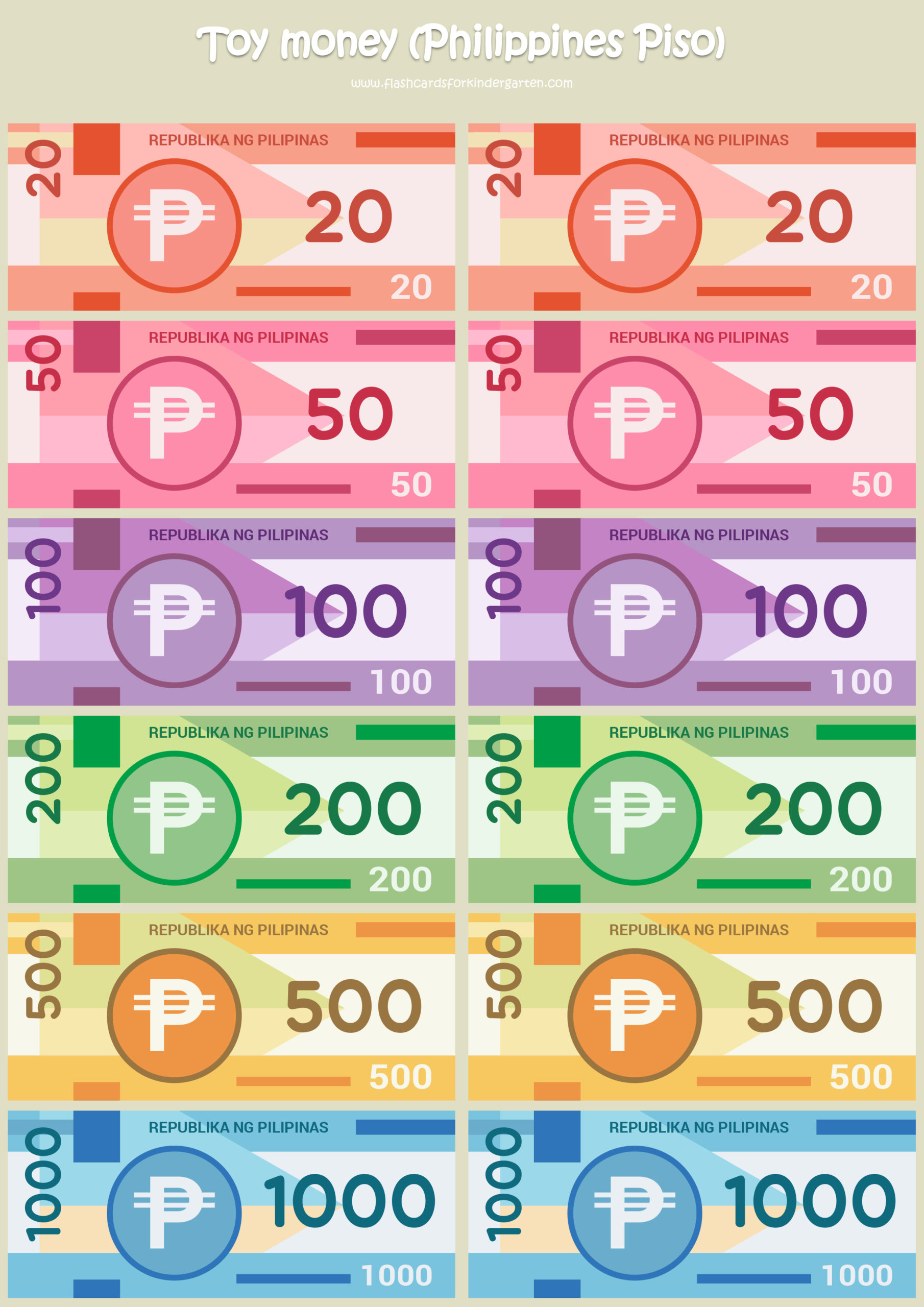 Teach Philippine currency with these money flashcards! All sets come with free printable toy money and classroom posters.