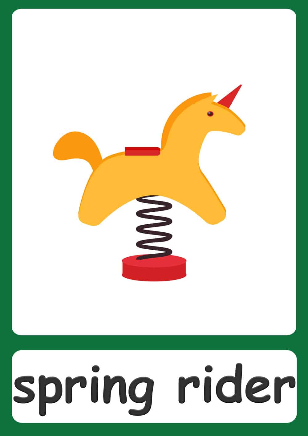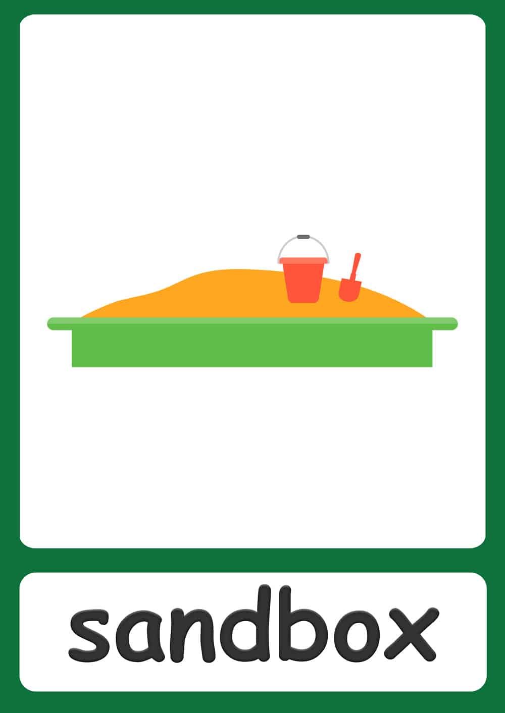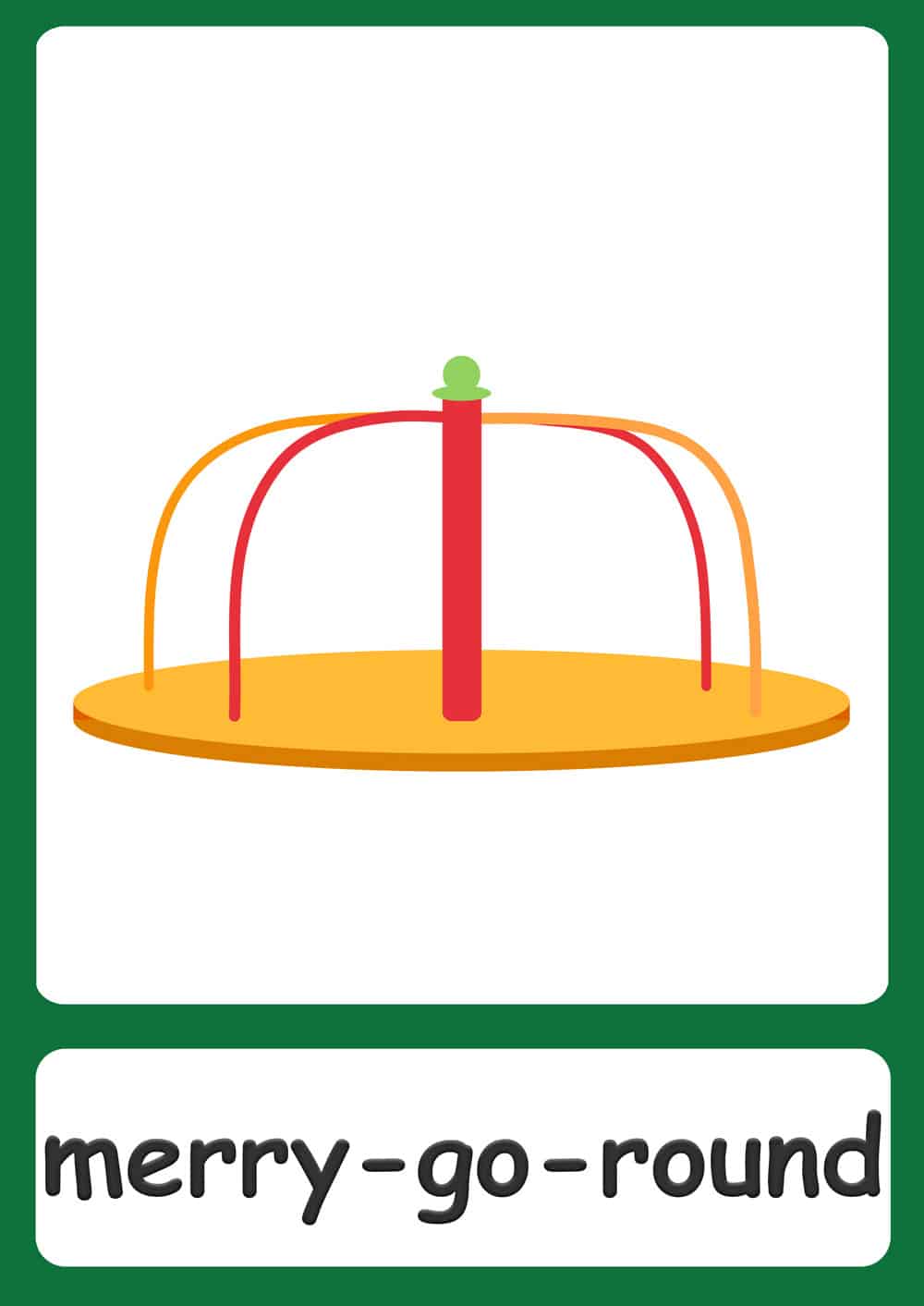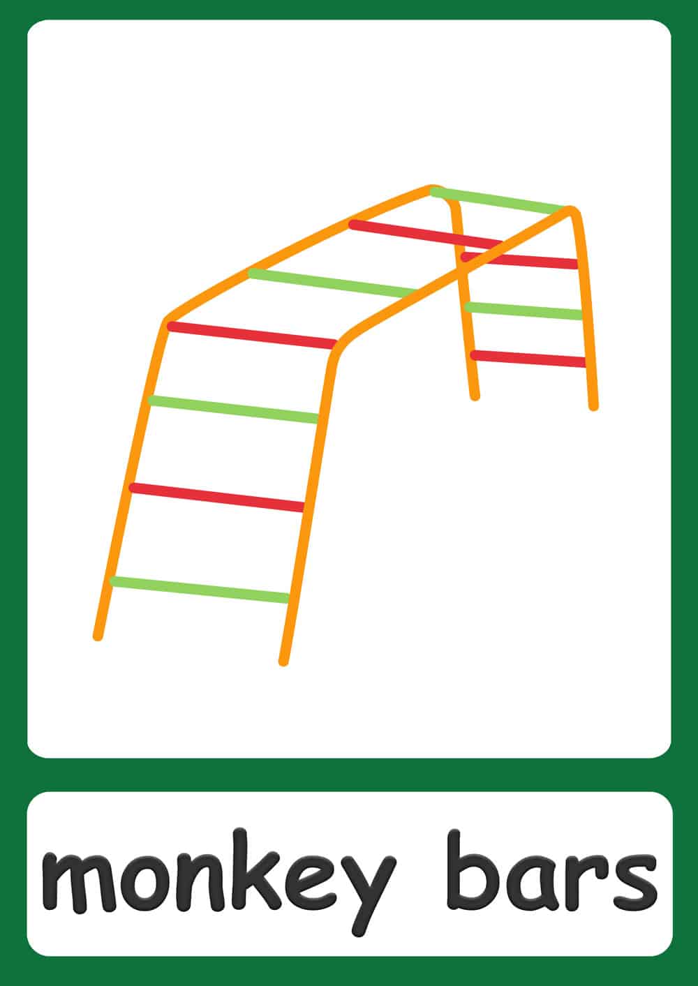 Do you take your children to the park? Why not teach them playground vocabulary words with these 14 playground flashcards. Talk about what things are available at the local park and talk about what they enjoy at the playground.