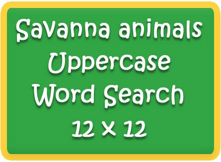 | Savanna animals Uppercase Word Search Puzzle 12 x12 | Read 9 savanna animal vocabulary words in uppercase |
