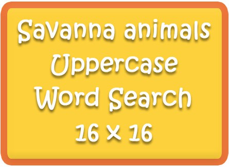 | Savanna animals Uppercase Word Search Puzzle 16 x16 | Read 9 savanna animal vocabulary words in uppercase |