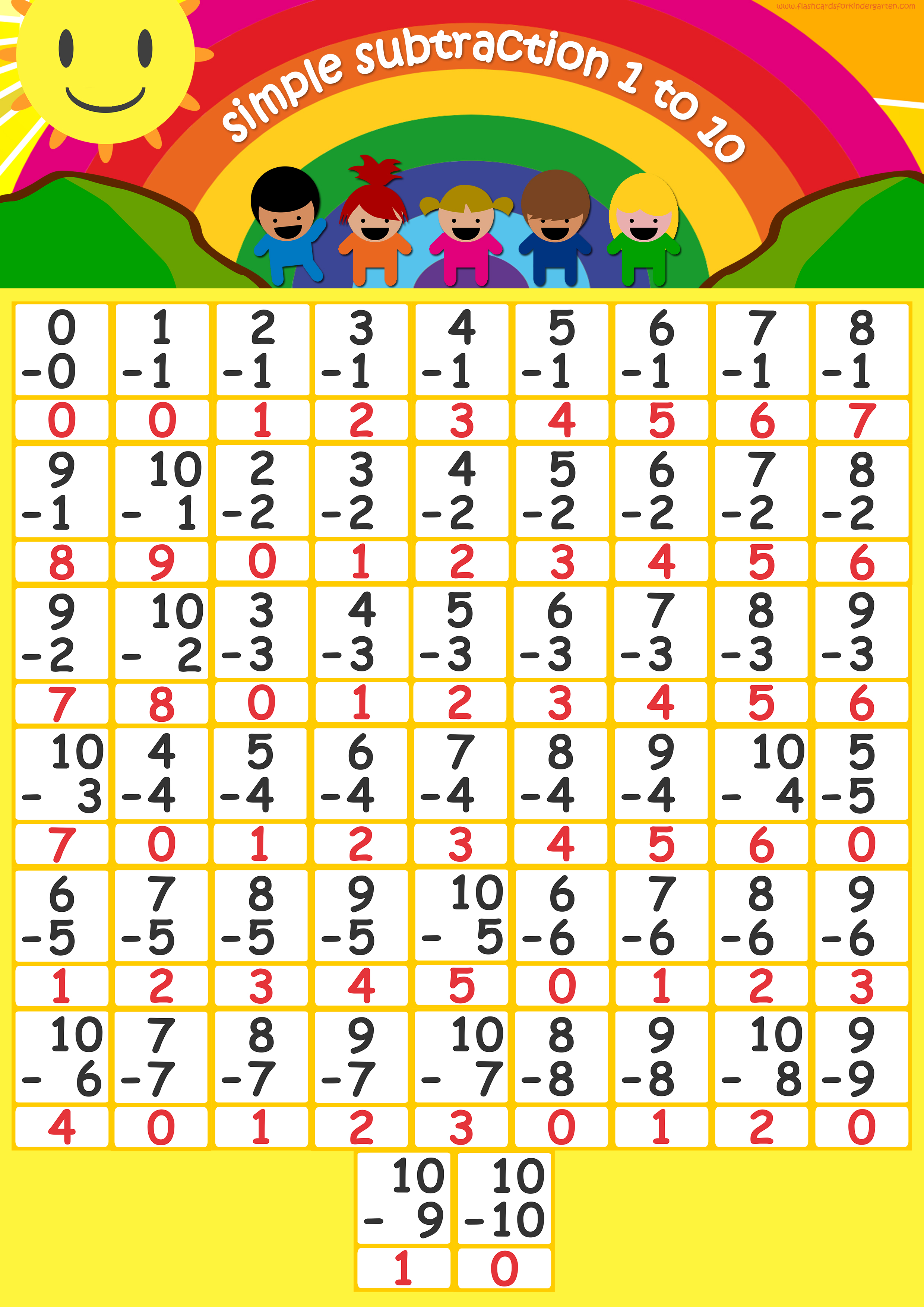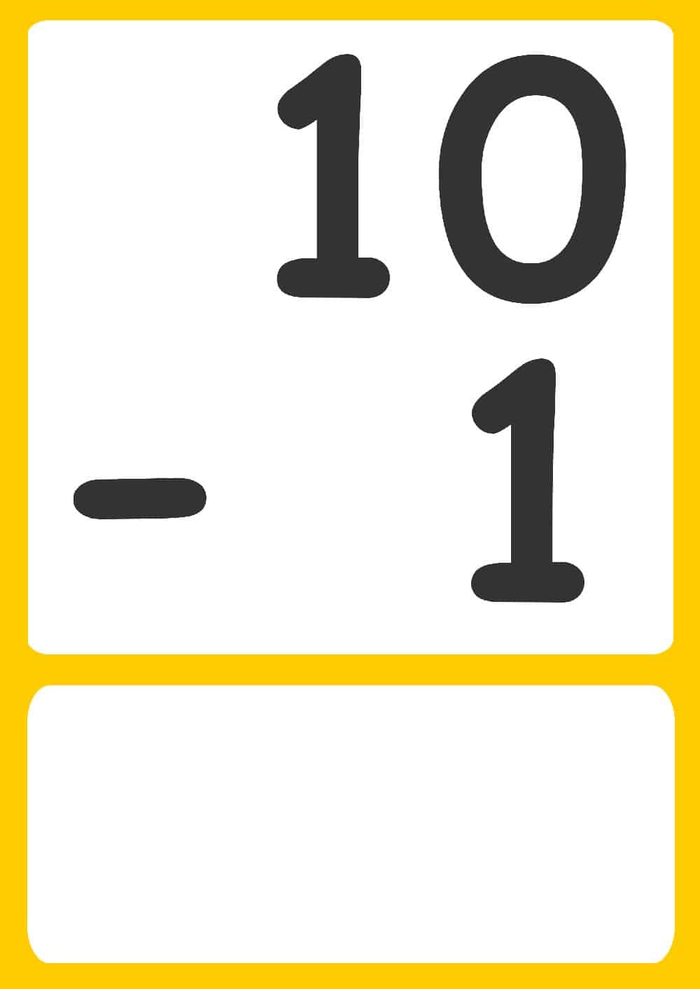 Subtraction flashcards 1 to 10 DOWNLOAD PACK 1