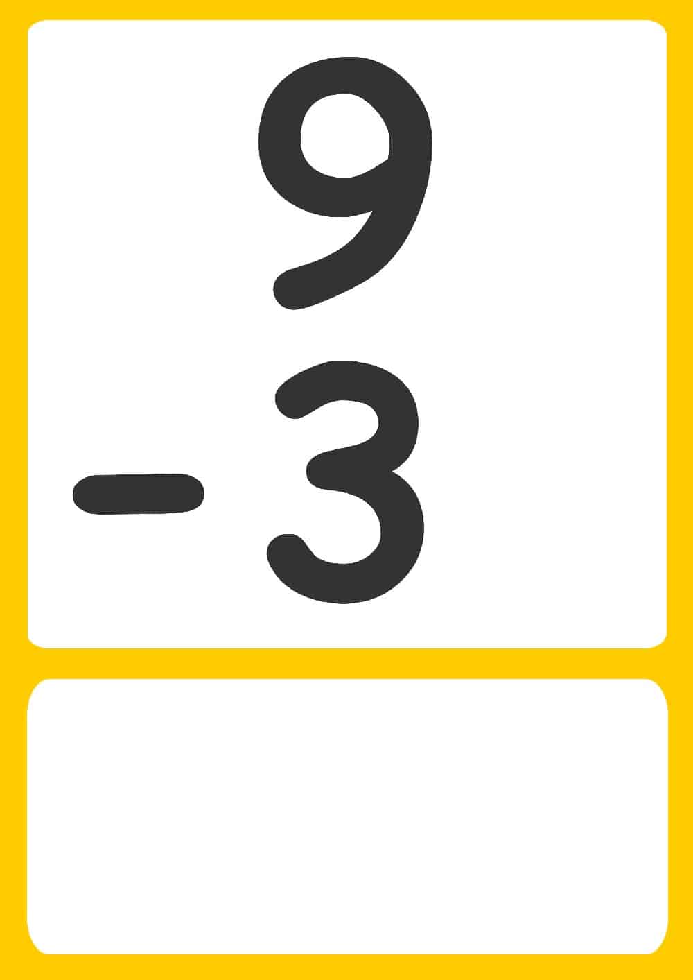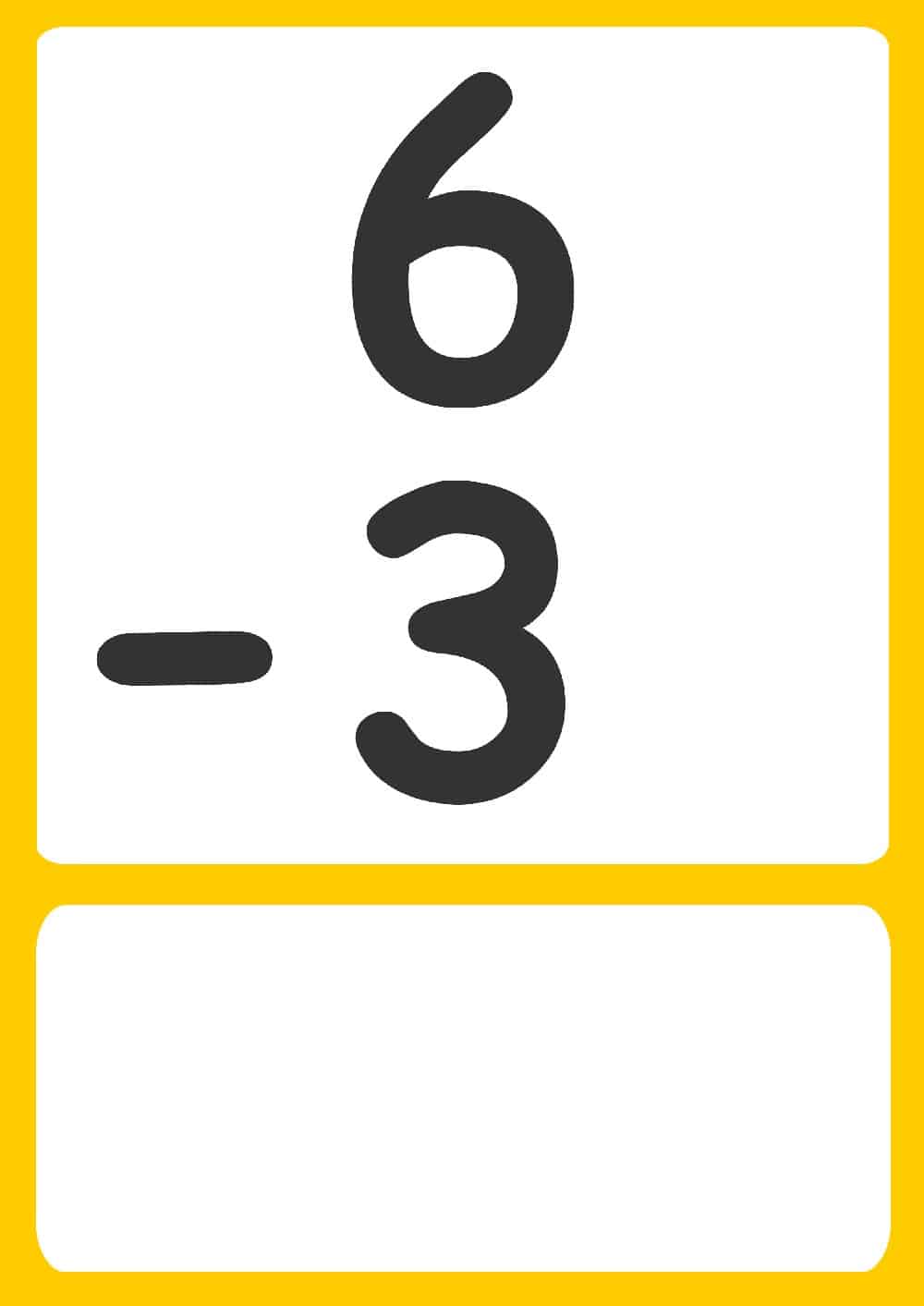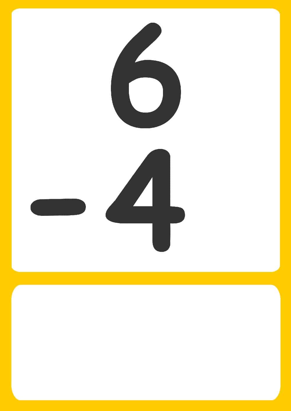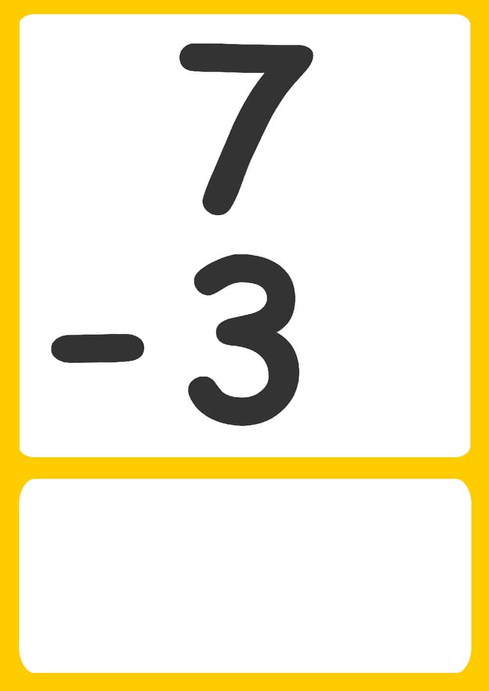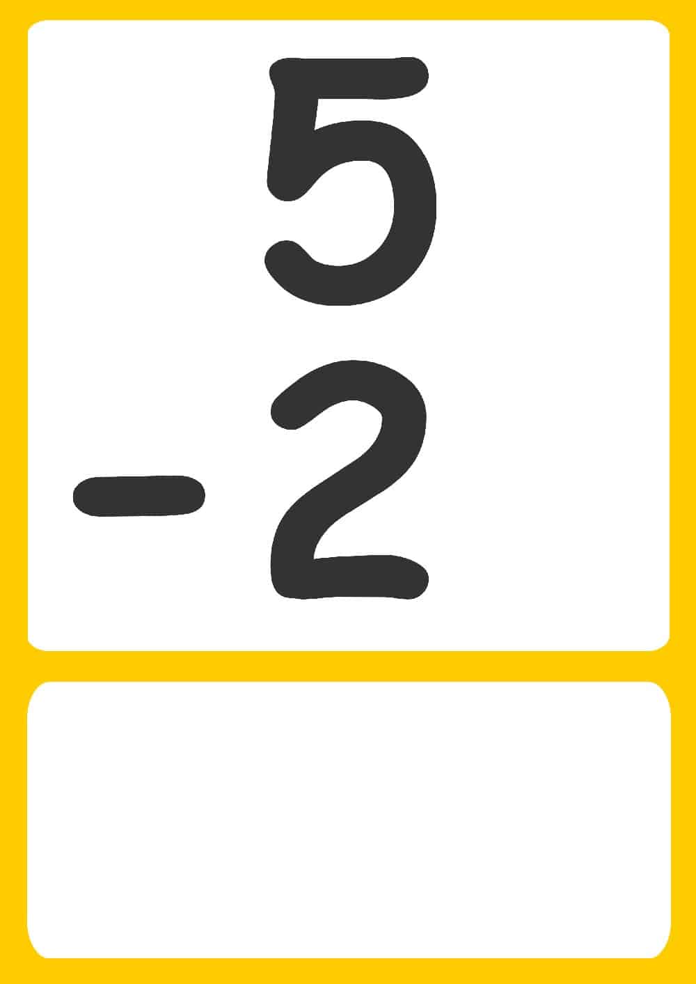 Pack 2 contains subtraction flashcards complete with answers. The answer can be covered by the teacher and the children can guess what the answer is. Another great way to use them is to cut the answer off the bottom of the card and have the children match them up!