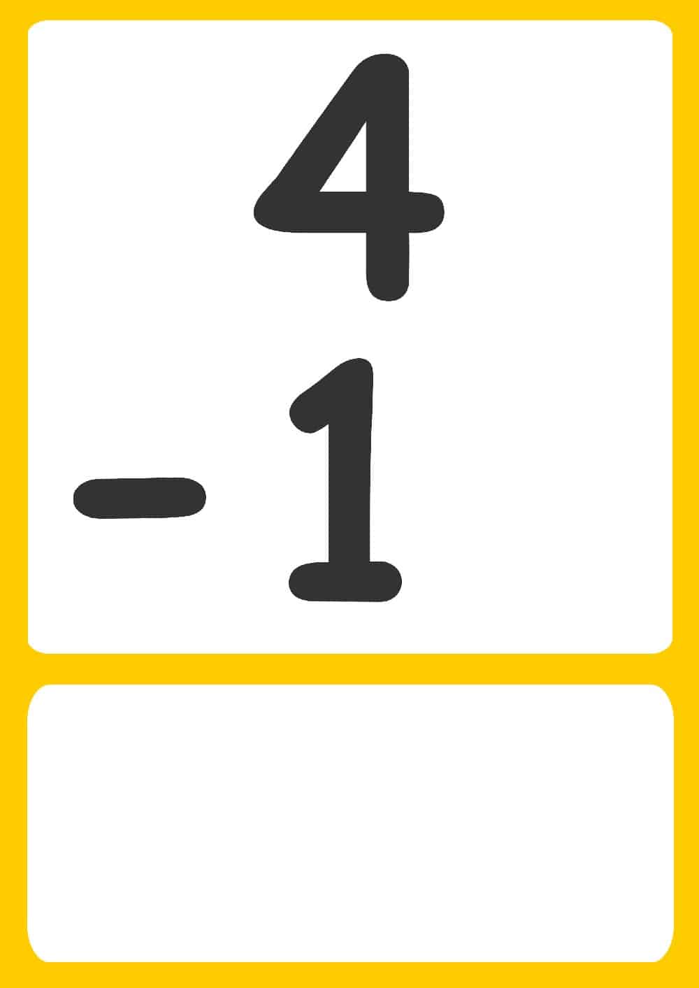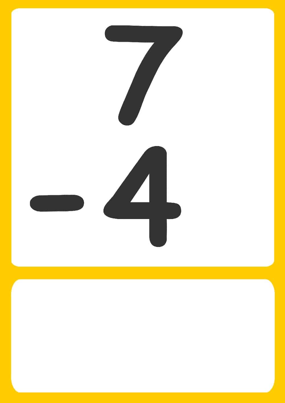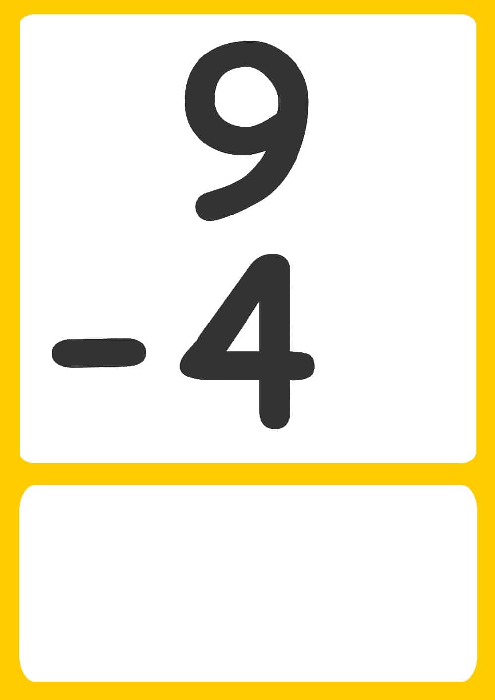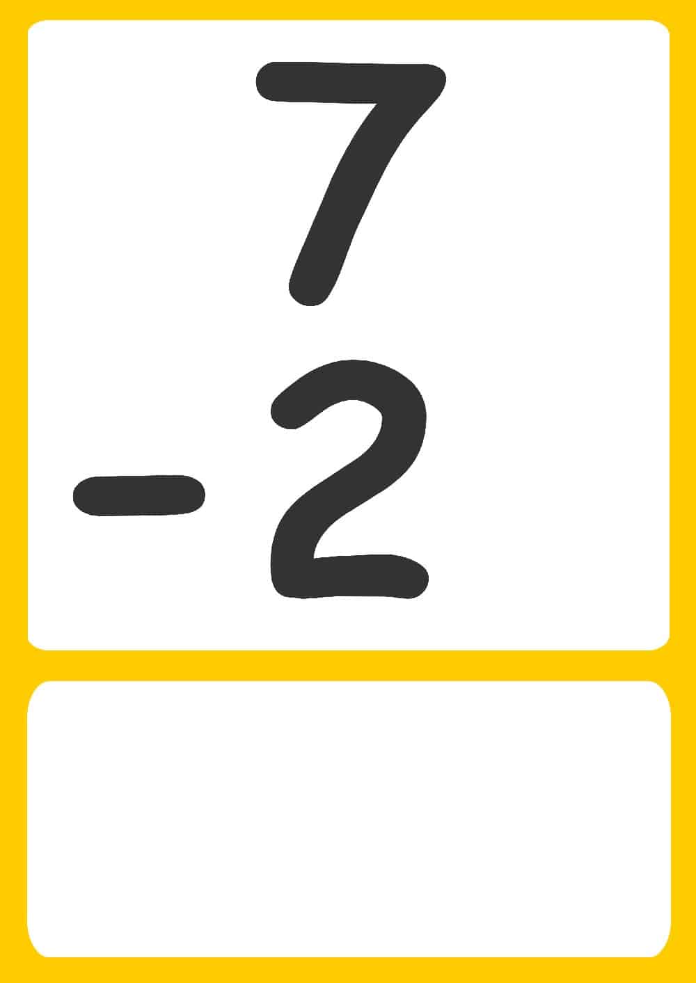 Pack 2 contains subtraction flashcards complete with answers. The answer can be covered by the teacher and the children can guess what the answer is. Another great way to use them is to cut the answer off the bottom of the card and have the children match them up!