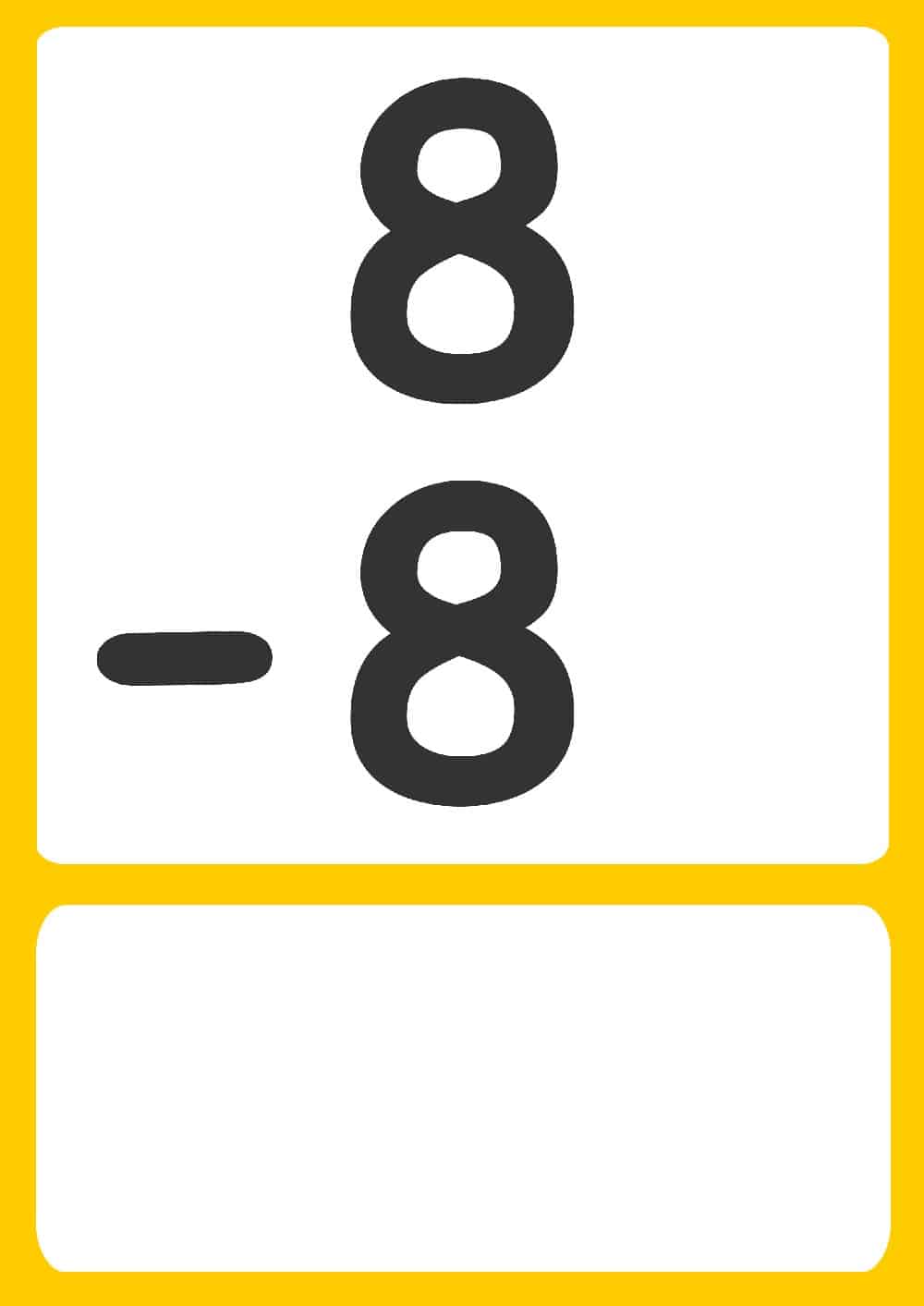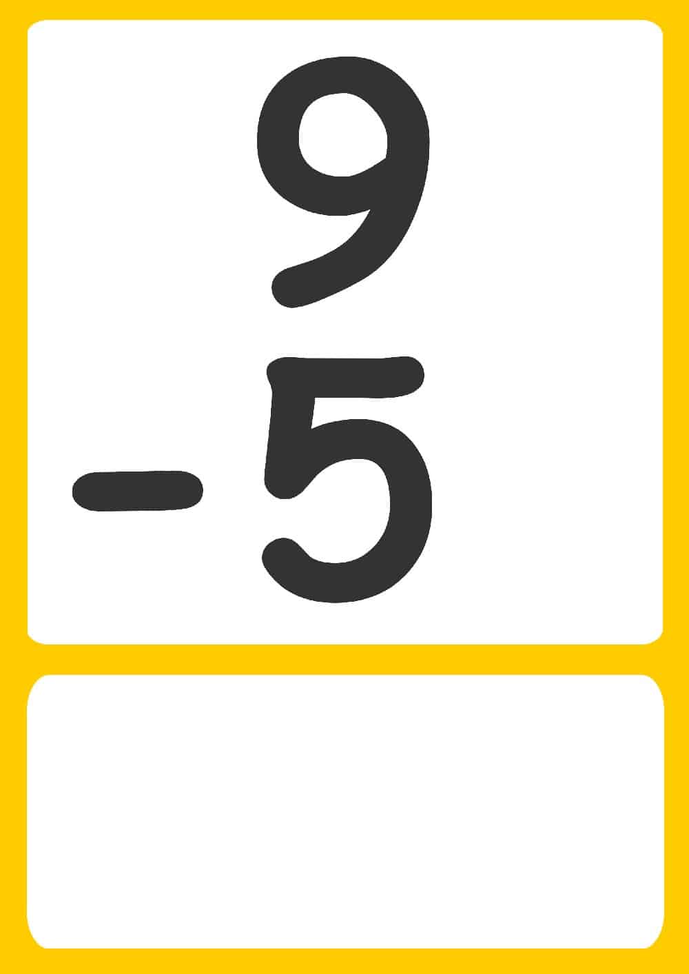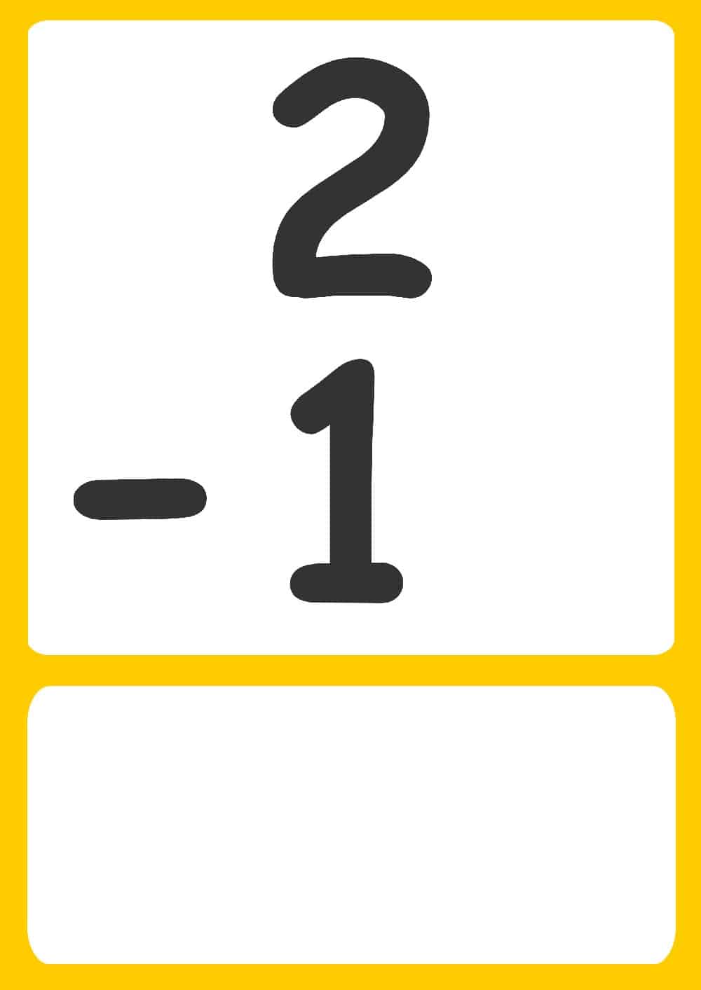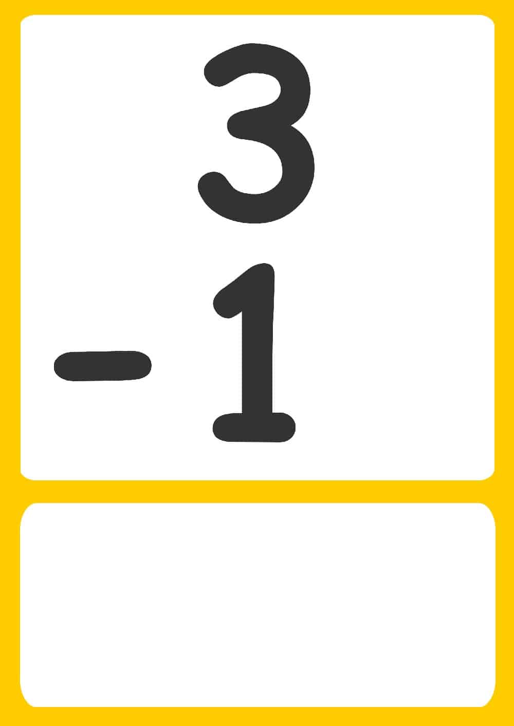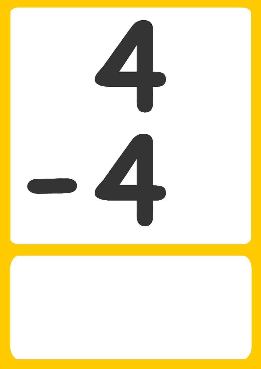 Pack 2 contains subtraction flashcards complete with answers. The answer can be covered by the teacher and the children can guess what the answer is. Another great way to use them is to cut the answer off the bottom of the card and have the children match them up!