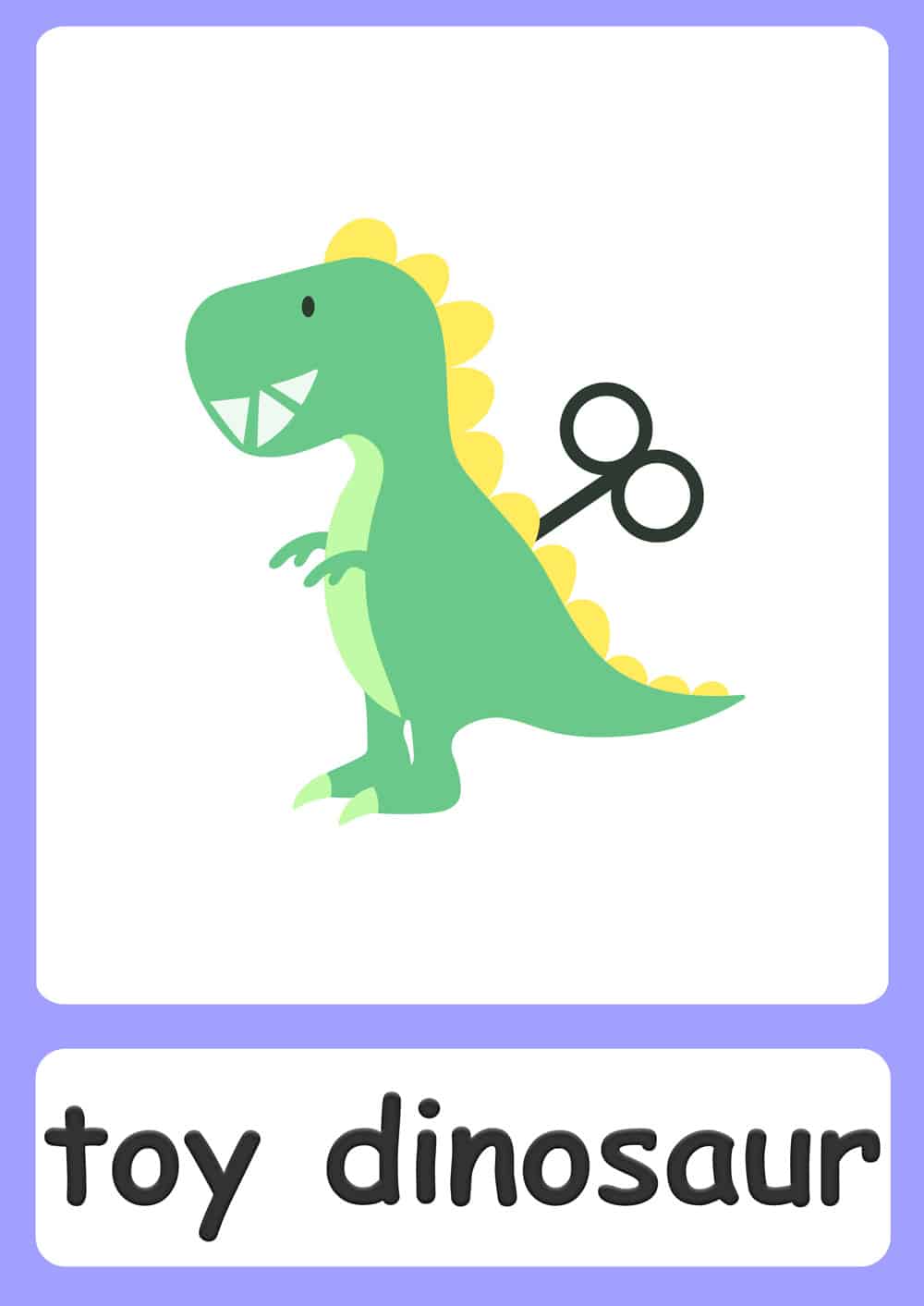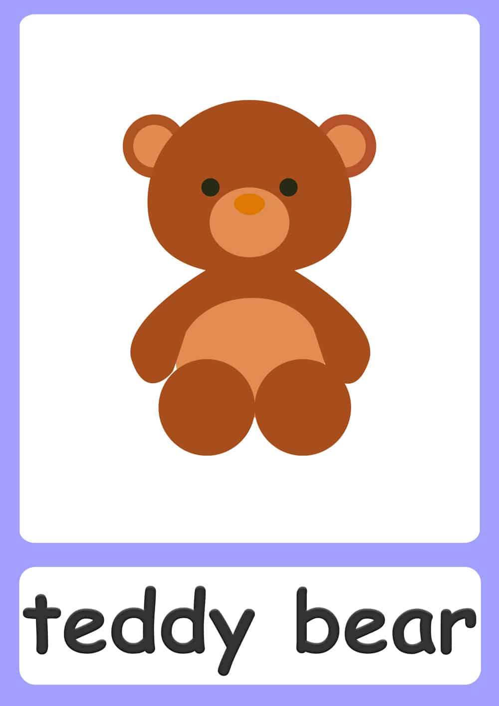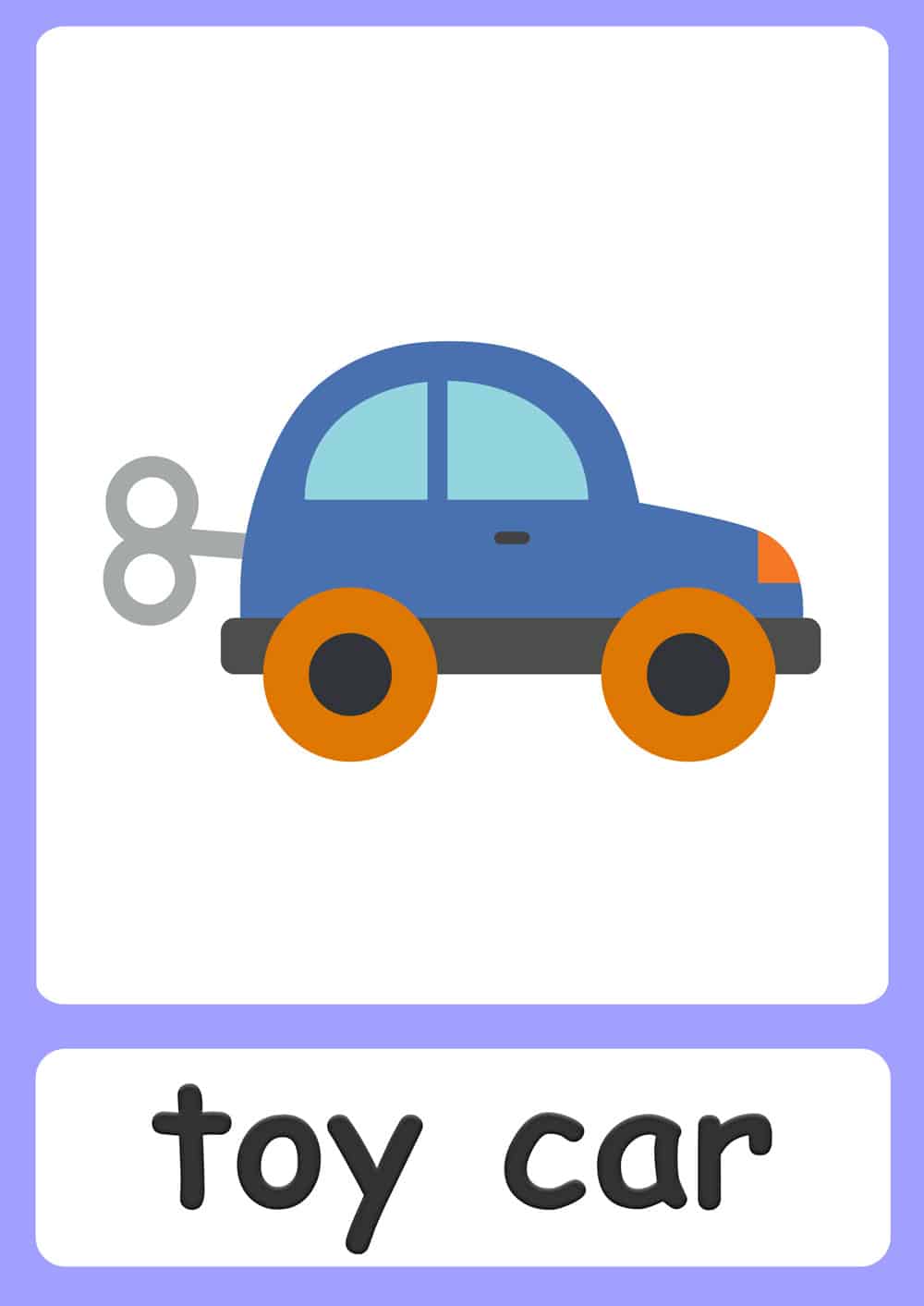 Children love playtime, so why not teach them toy vocabulary using these toy flashcards? Teach your students basic toy names and encourage your kids to use their vocabulary in class. Expand the conversation by talking about what toys they have at home or what their favorite toy is. Teach sentence patterns such as “I play with ~ “ or “I play on my ~ “.