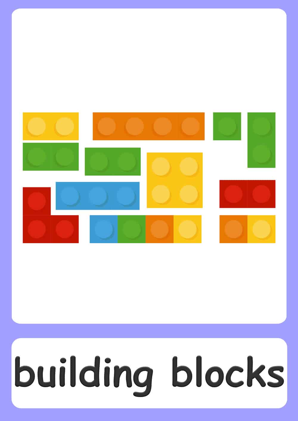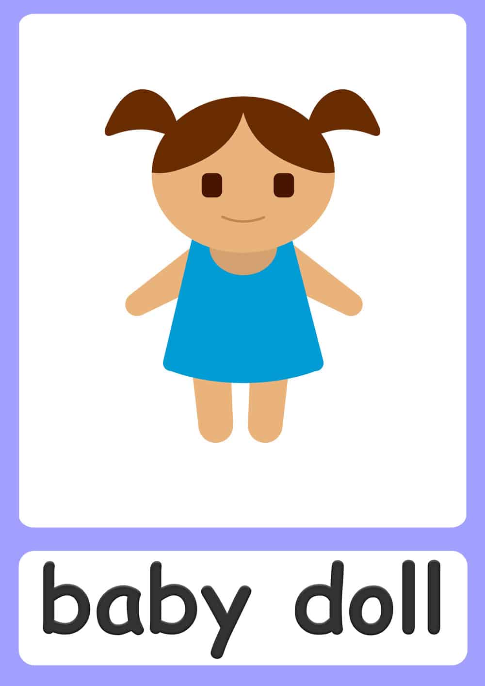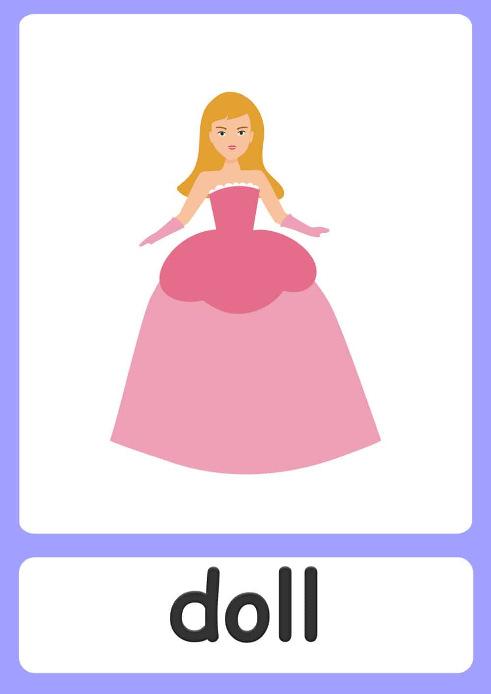 Children love playtime, so why not teach them toy vocabulary using these toy flashcards? Teach your students basic toy names and encourage your kids to use their vocabulary in class. Expand the conversation by talking about what toys they have at home or what their favorite toy is. Teach sentence patterns such as “I play with ~ “ or “I play on my ~ “.